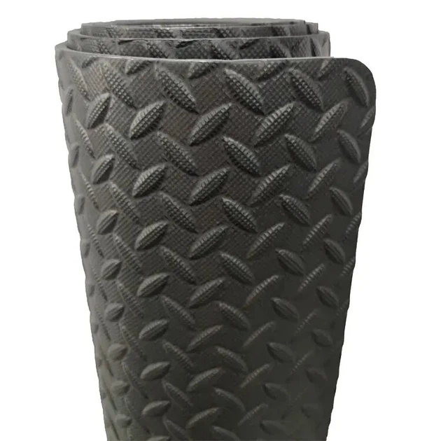 The surface features a textured anti-slip pattern, providing stability and preventing equipment from sliding during workouts.